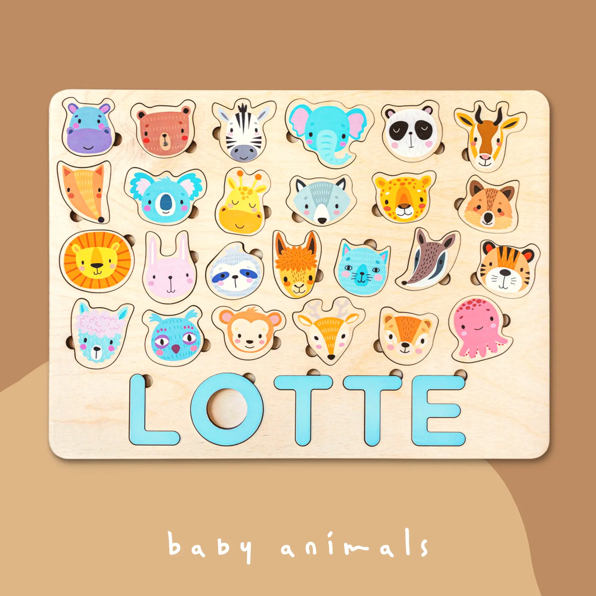 Dit prachtig geïllustreerde houten inlegpuzzel is perfect voor allerlei soorten spel. Geschikt voor kinderen tot wel 5 jaar! Kleinere kinderen houden zich graag bezig met het oplossen van de naampuzzel. Ze vinden het vooral leuk om de eigen naam te zien en te leren herkennen. Met een naampuzzel wordt de eigen naam ineens tastbaar. Een heel nieuw belevenis! Maar dat is nog maar het begin. Voor je het weet zit het kind midden in een eigen gecreëerd verhaal en bedenkt het zijn eigen spelletjes met de puzzelfiguren. De houten puzzelstukjes zijn namelijk ook prima te gebruiken als speelfiguren! Voor meer educatief speelplezier, leer je jouw kind elke letter en elk voorwerp te zoeken en te vinden in de puzzel.