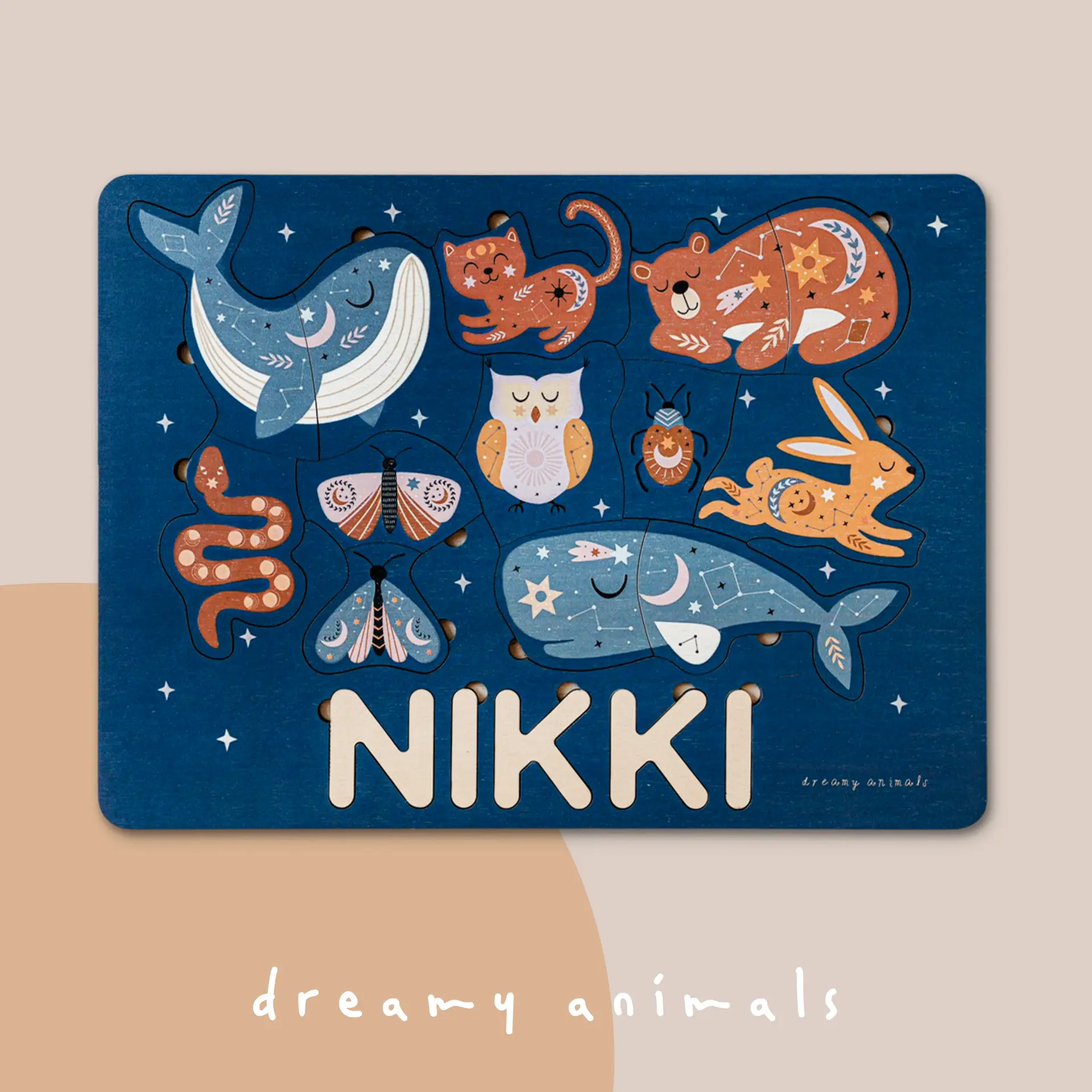 Dit prachtig geïllustreerde houten inlegpuzzel is perfect voor allerlei soorten spel. Geschikt voor kinderen tot wel 5 jaar! Kleinere kinderen houden zich graag bezig met het oplossen van de naampuzzel. Ze vinden het vooral leuk om de eigen naam te zien en te leren herkennen. Met een naampuzzel wordt de eigen naam ineens tastbaar. Een heel nieuw belevenis! Maar dat is nog maar het begin. Voor je het weet zit het kind midden in een eigen gecreëerd verhaal en bedenkt het zijn eigen spelletjes met de puzzelfiguren. De houten puzzelstukjes zijn namelijk ook prima te gebruiken als speelfiguren! Voor meer educatief speelplezier, leer je jouw kind elke letter en elk voorwerp te zoeken en te vinden in de puzzel.