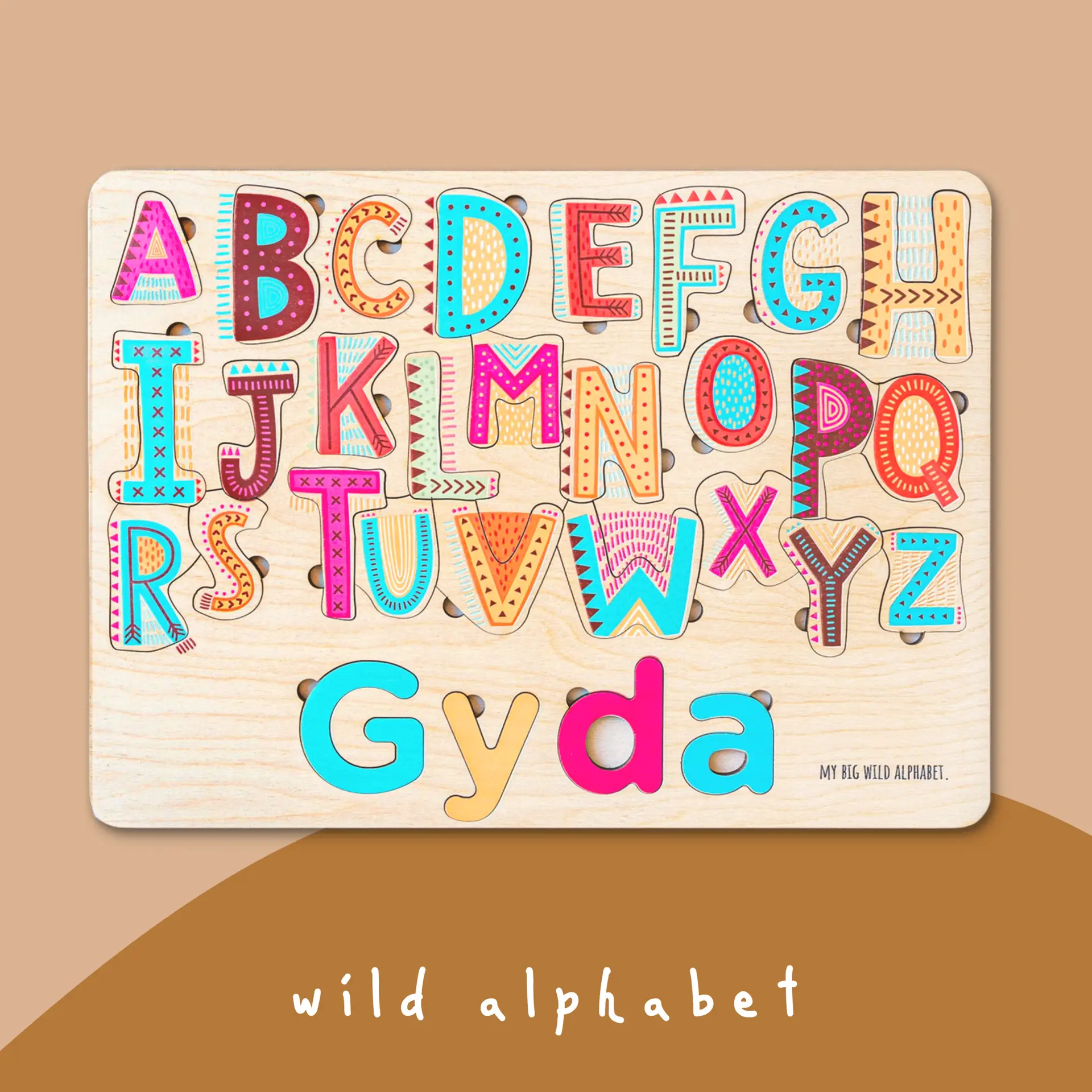 Dit prachtig geïllustreerde houten inlegpuzzel is perfect voor allerlei soorten spel. Geschikt voor kinderen tot wel 5 jaar! Kleinere kinderen houden zich graag bezig met het oplossen van de naampuzzel. Ze vinden het vooral leuk om de eigen naam te zien en te leren herkennen. Met een naampuzzel wordt de eigen naam ineens tastbaar. Een heel nieuw belevenis! Maar dat is nog maar het begin. Voor je het weet zit het kind midden in een eigen gecreëerd verhaal en bedenkt het zijn eigen spelletjes met de puzzelfiguren. De houten puzzelstukjes zijn namelijk ook prima te gebruiken als speelfiguren! Voor meer educatief speelplezier, leer je jouw kind elke letter en elk voorwerp te zoeken en te vinden in de puzzel.